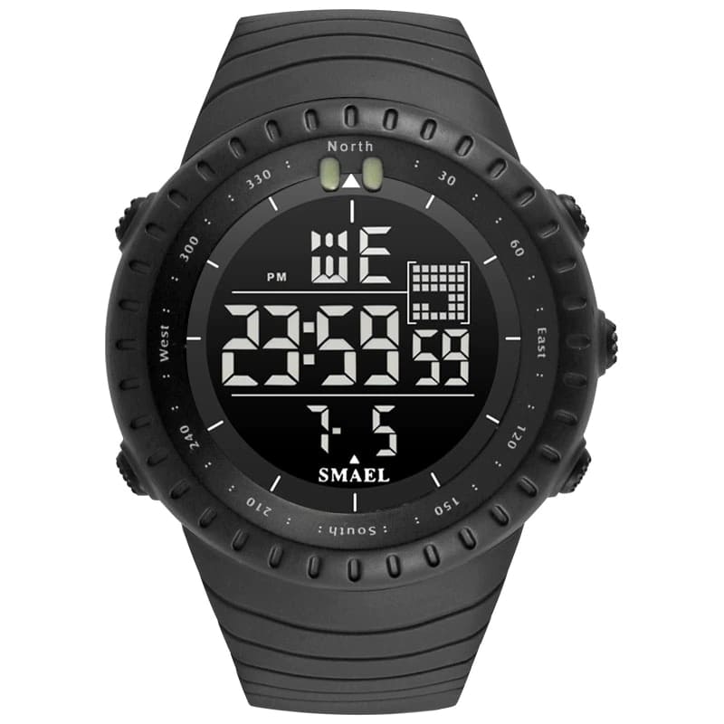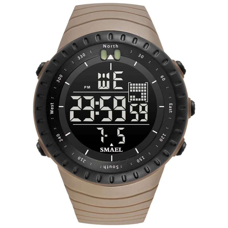 The SMAEL 1237 features a large, dynamic digital display, showing the time, date, and often has a stopwatch, alarm, and a useful backlight for low-light conditions. The bold numbers and tactical-inspired design ensure quick glances give you all the information you need. The compass markings on the bezel add to its adventurous appeal.